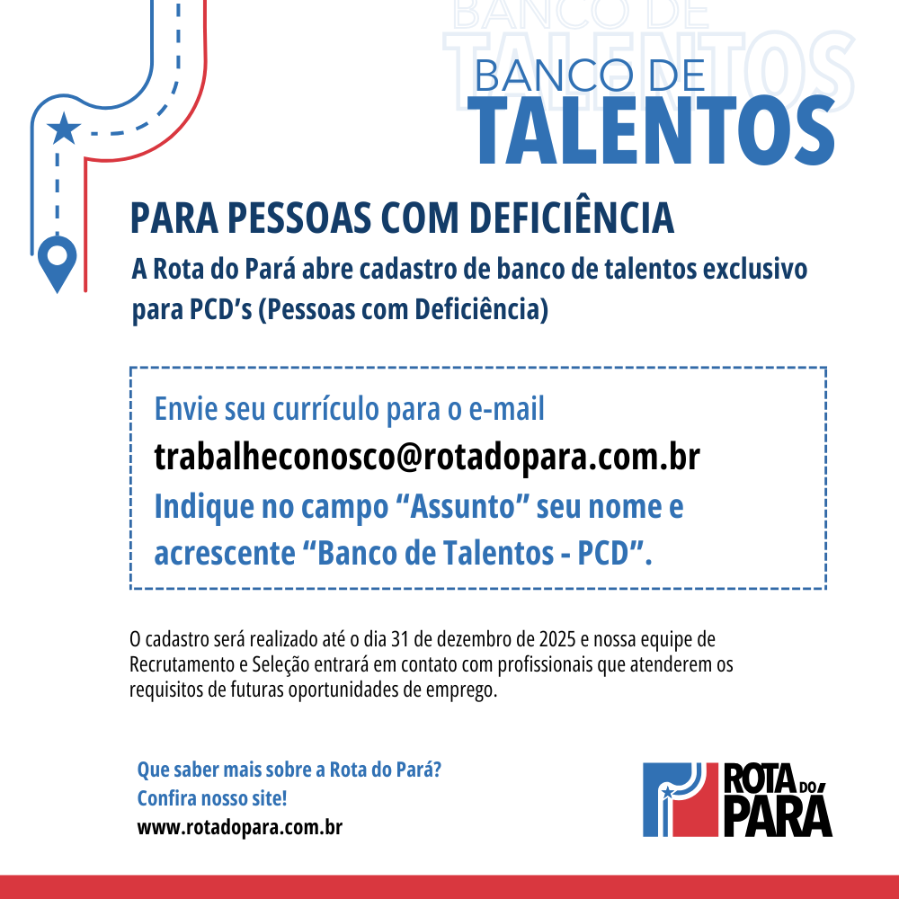 A Rota do Pará abre cadastro de banco de talentos exclusivo para PCD’s (Pessoas com Deficiência)